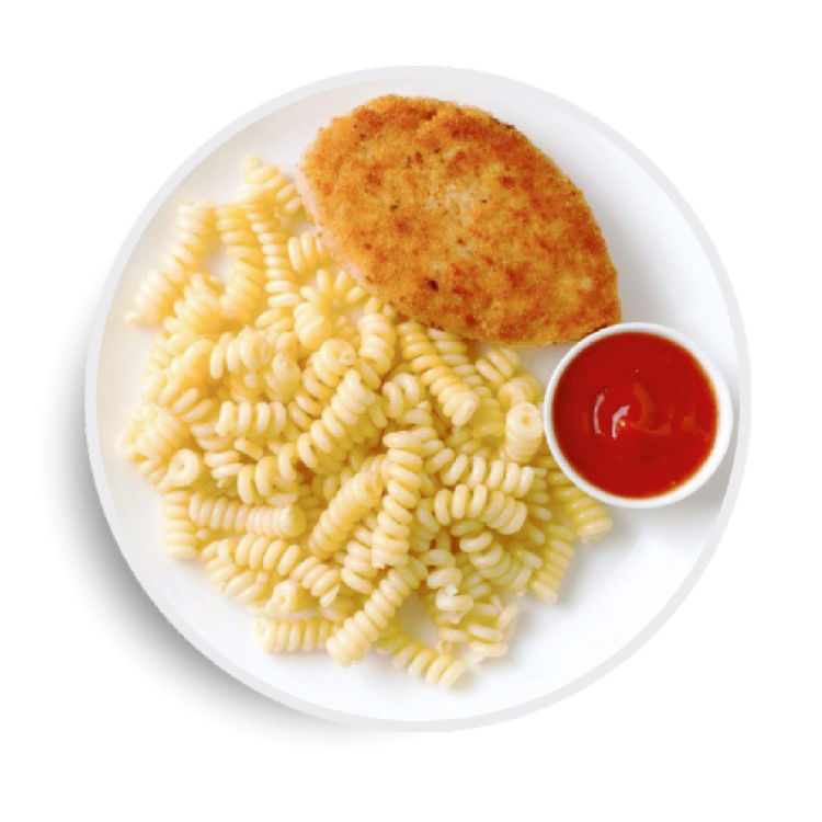 Куриная котлета с макаронами