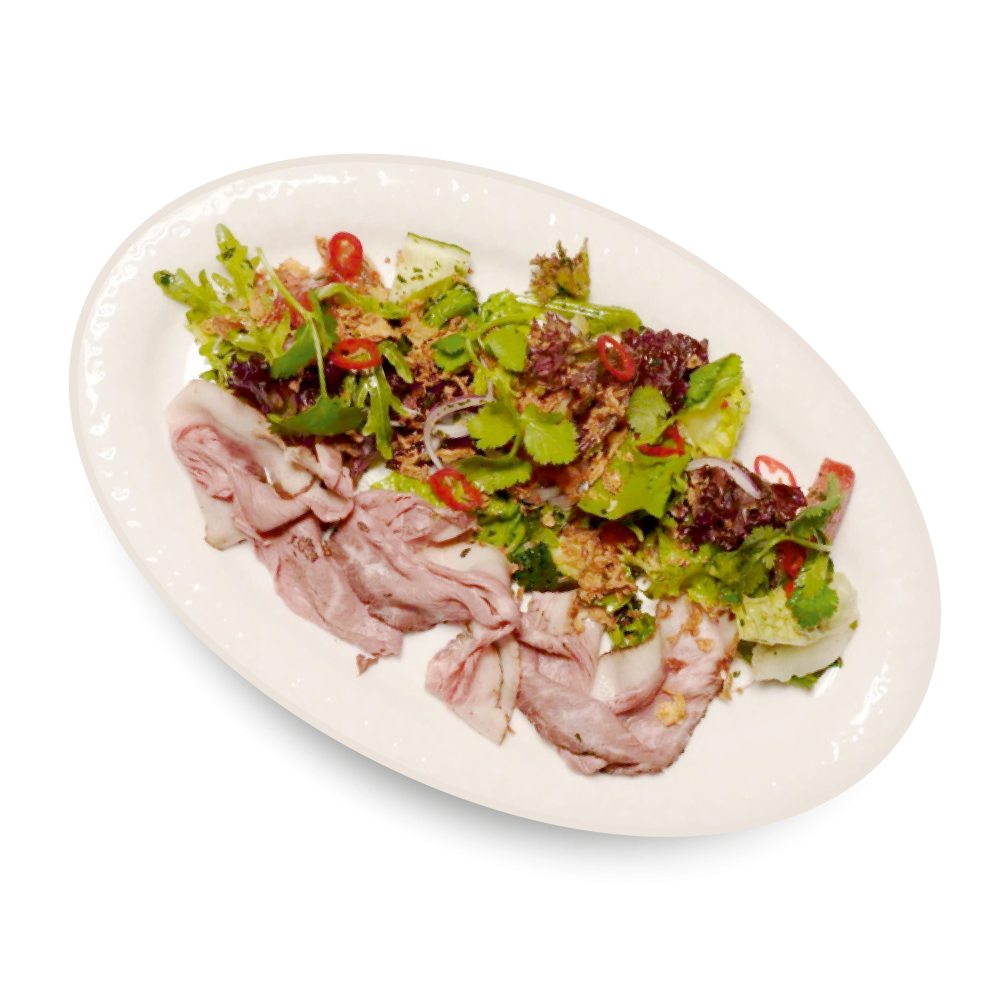 Салат с ростбифом, запеченными овощами и песто из зелени